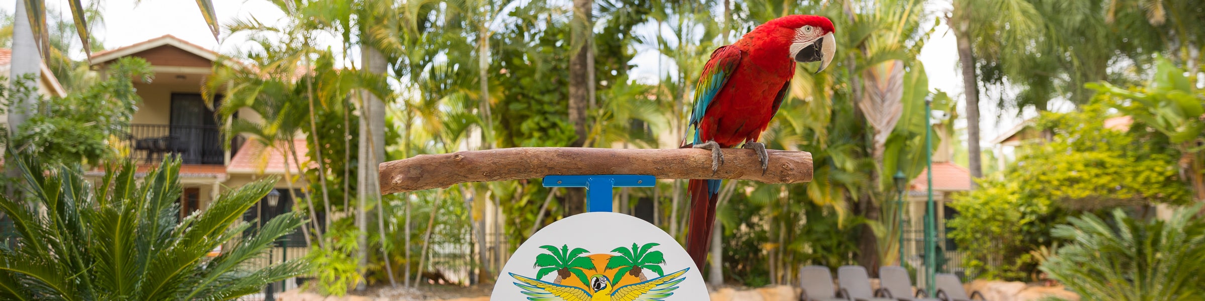 Ensure to say hello to Zeus and the other exotic parrots during your Gold Coast holiday at Ashmore Palms!